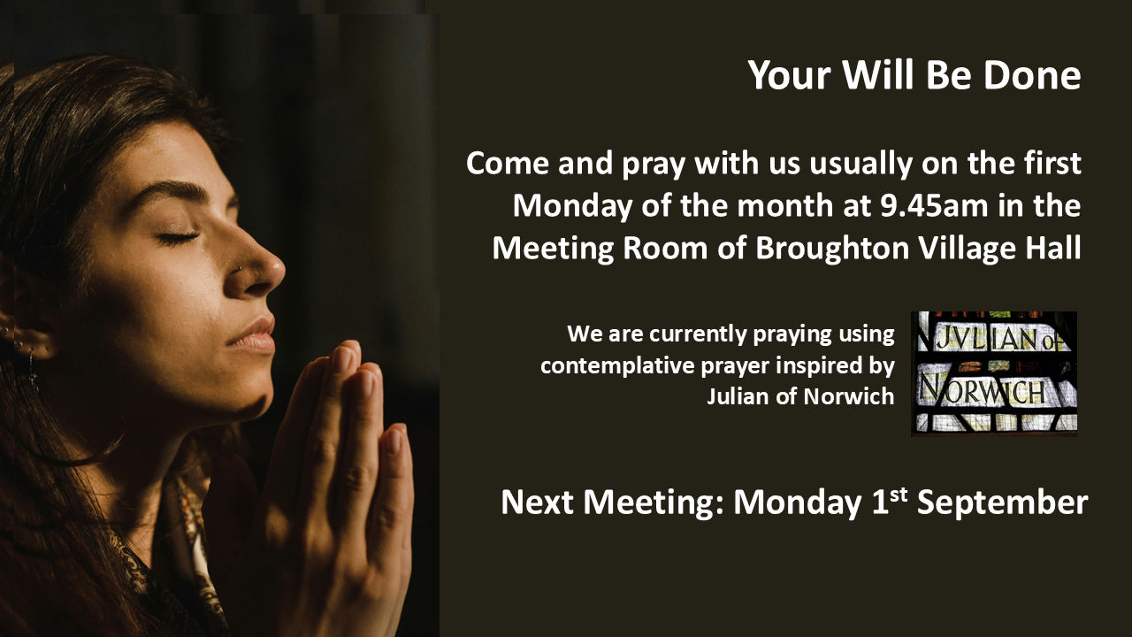 Come and pray with us for and about the future of Broughton Kirk. We meet from 9.45 a.m. to 10.45 a.m. on the the third Monday of each month at Broughton Village Hall.