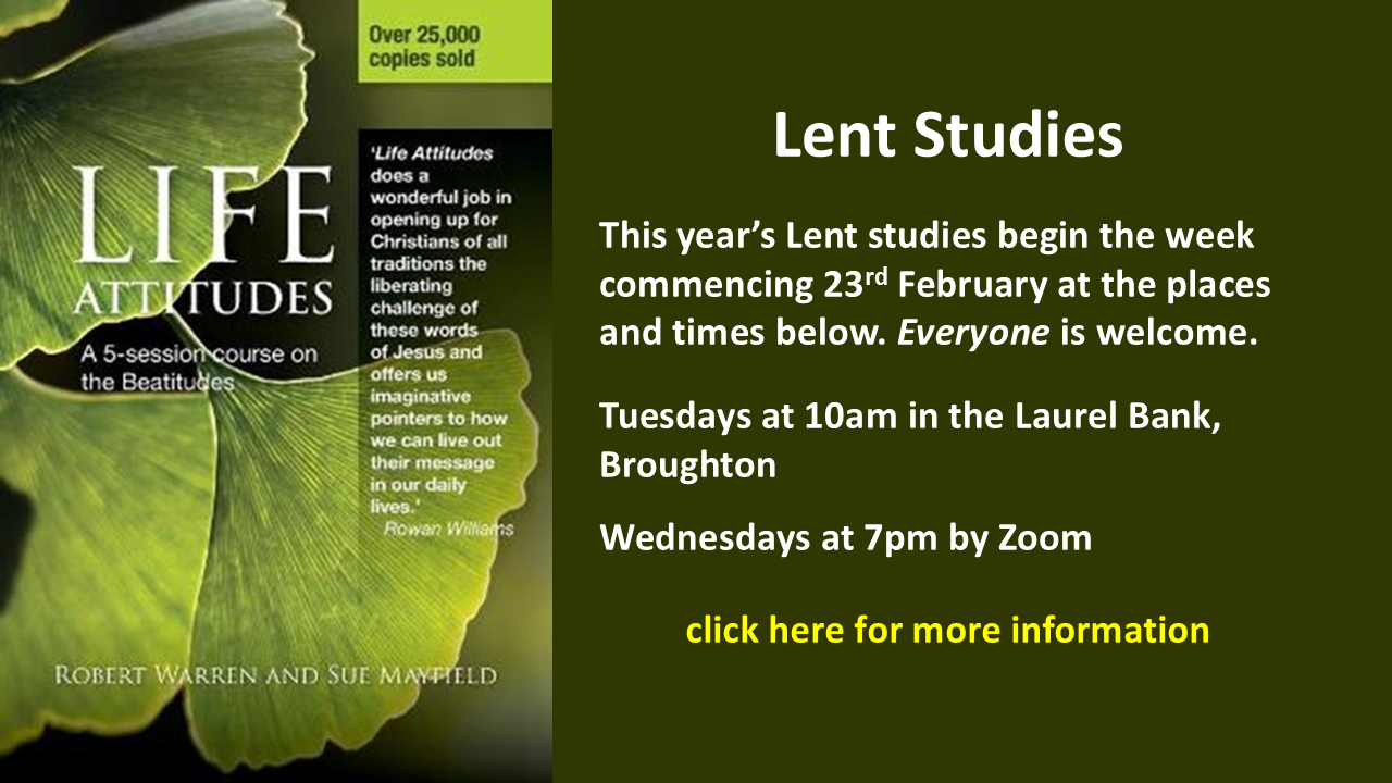 For Lent this year we will be discussing the beatitudes using Robert Warren and Sue Mayfield's book Life Attitudes.